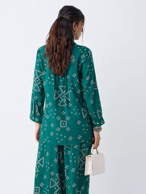 Green Bandhani Printed Tunic