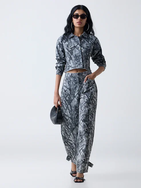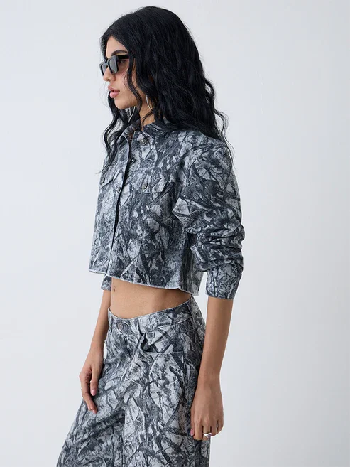Nuno Grey Camouflage Printed Cotton - Blend Jacket
