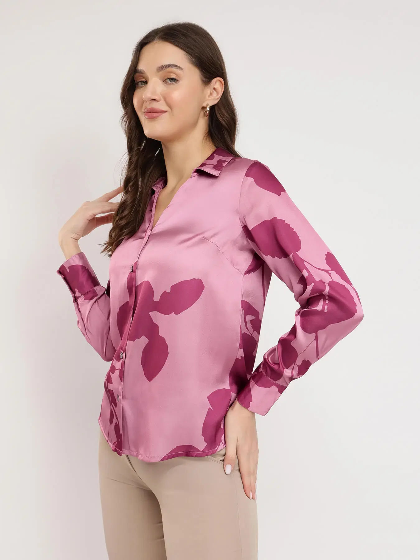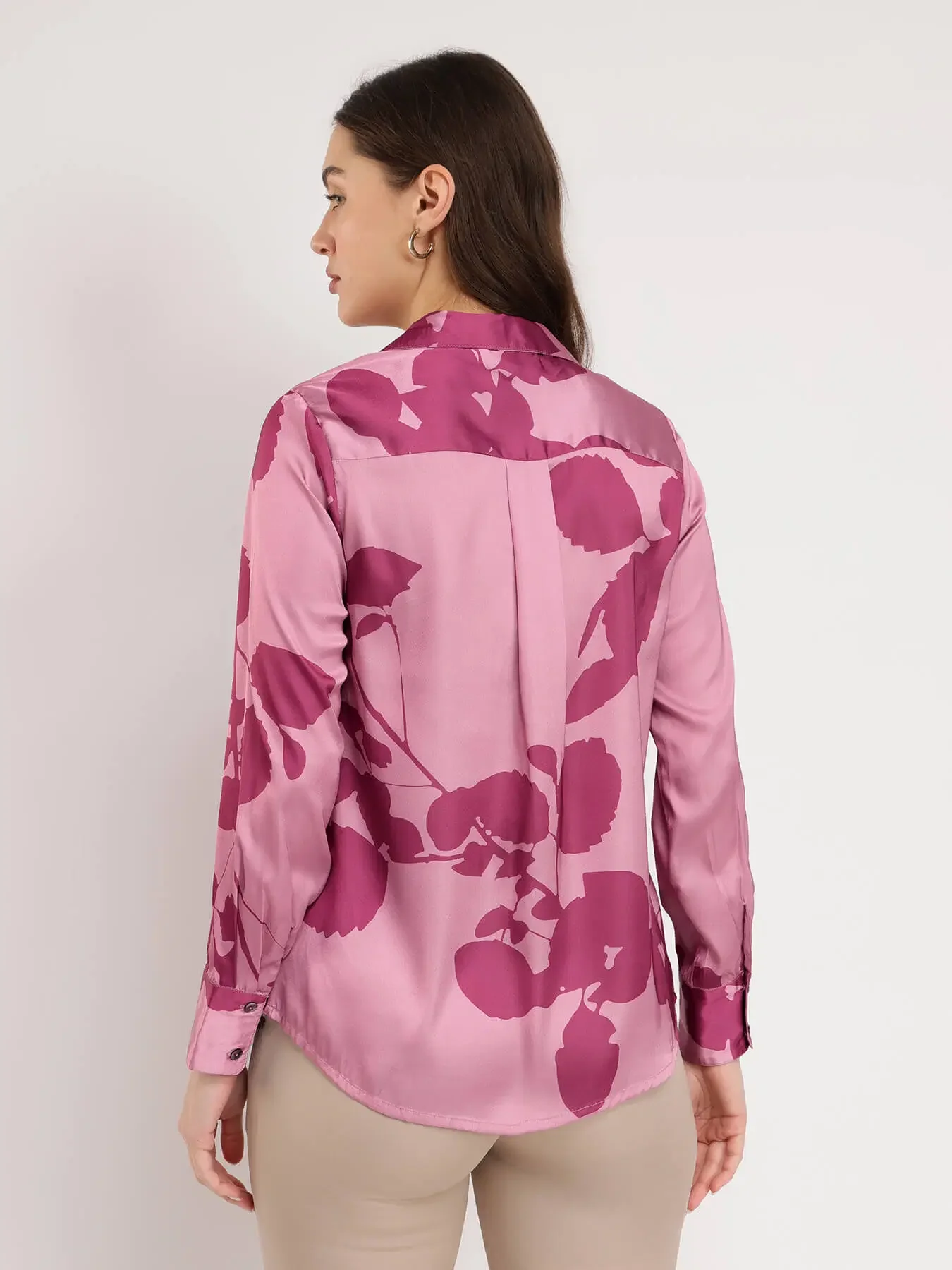 Satin Floral Shirt -Pink