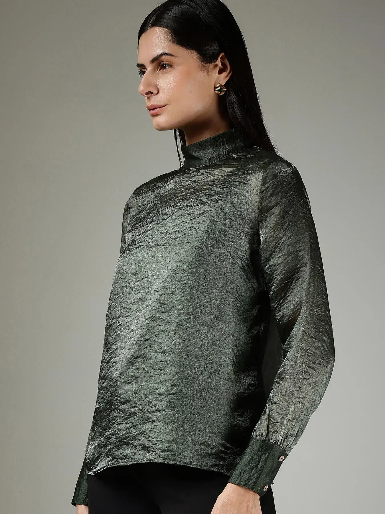 Silk High Neck Top - Green