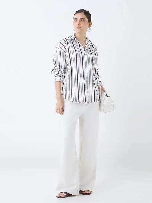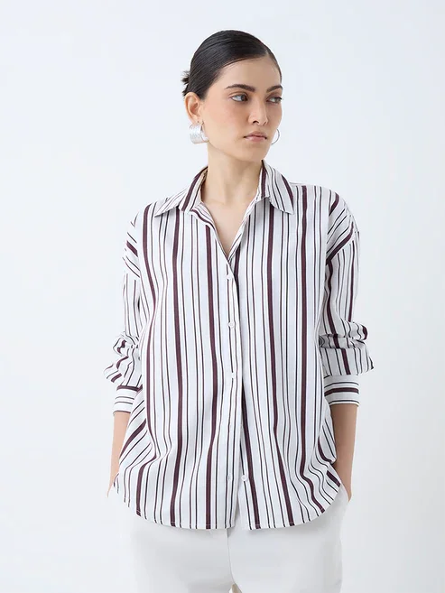 White Stripe Printed Cotton Shirt