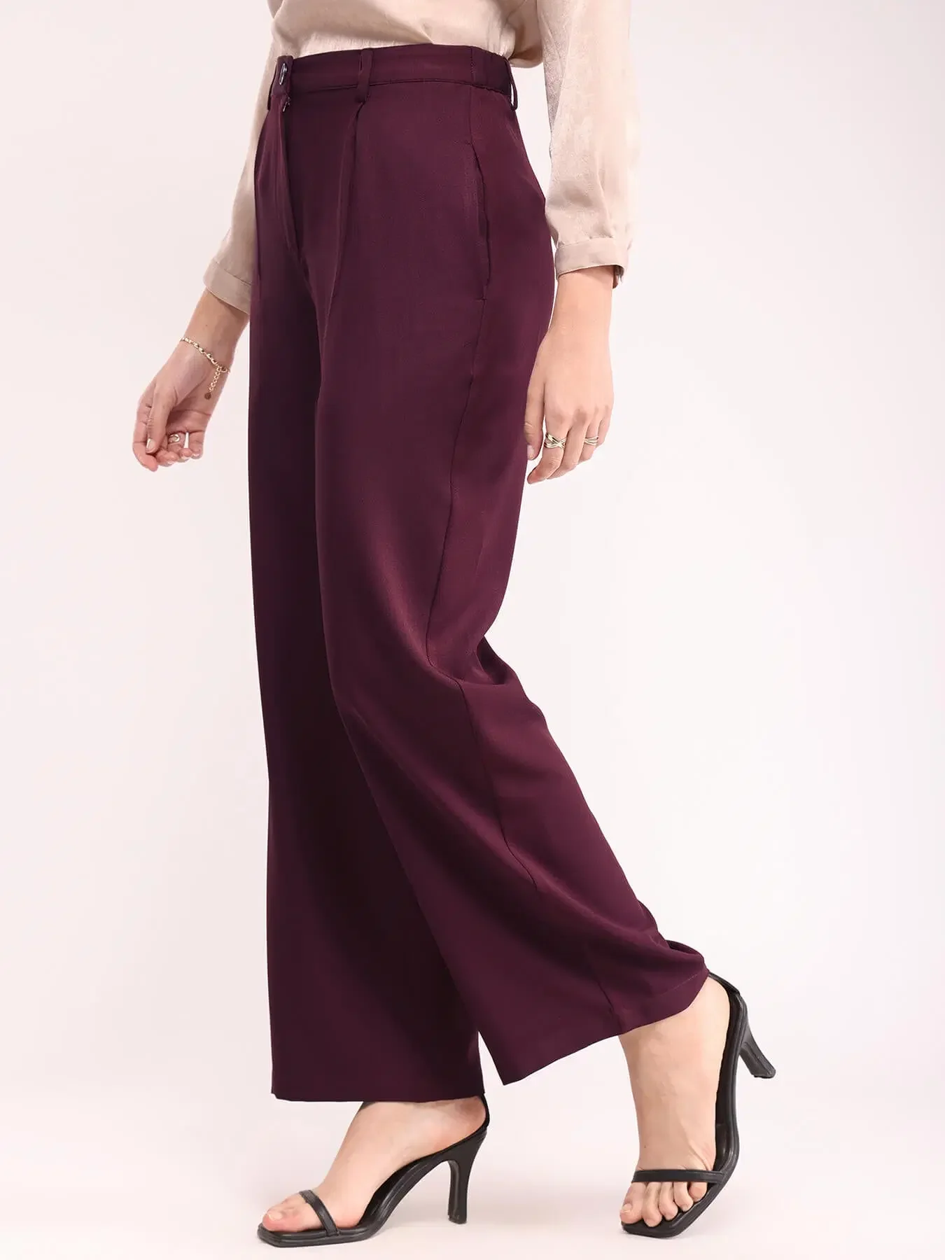Wide Leg Trousers - Wine